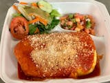Large flour tortilla filled with your choice of meat, tomatoes, rice, pinto beans, sour cream, Mexican cheese. Served with a side salad, and pico de gallo.