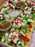 Fresh Romaine lettuce, mixed greens, tomatoes, red onions, cucumbers and calamata olives.